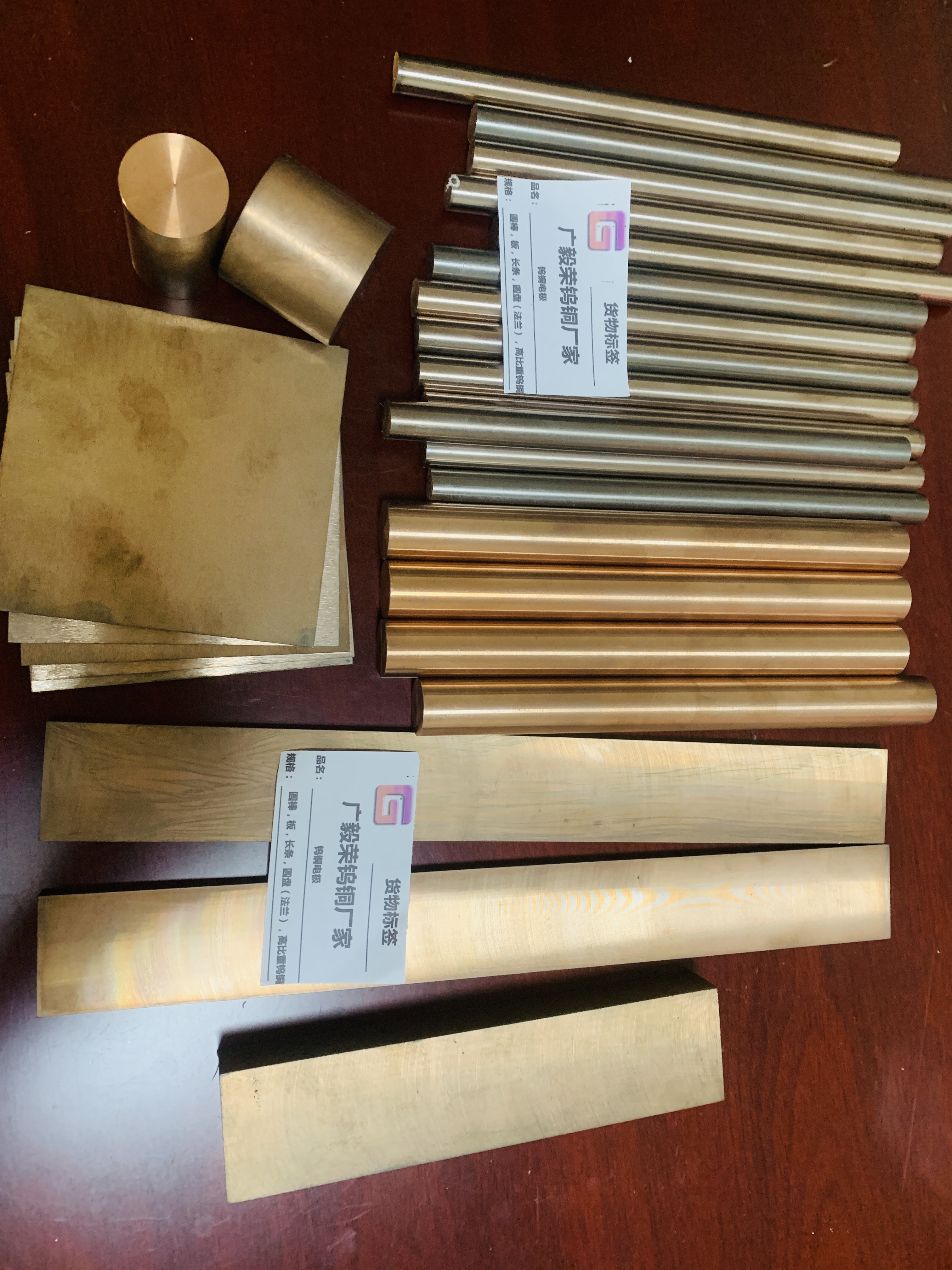 主要銅材:錫青銅,磷青銅,鋁青銅,鈹青銅,黃銅,紅銅,氧化鋁銅,鉻鋯銅,鎢銅,純鎢,銀鎢。